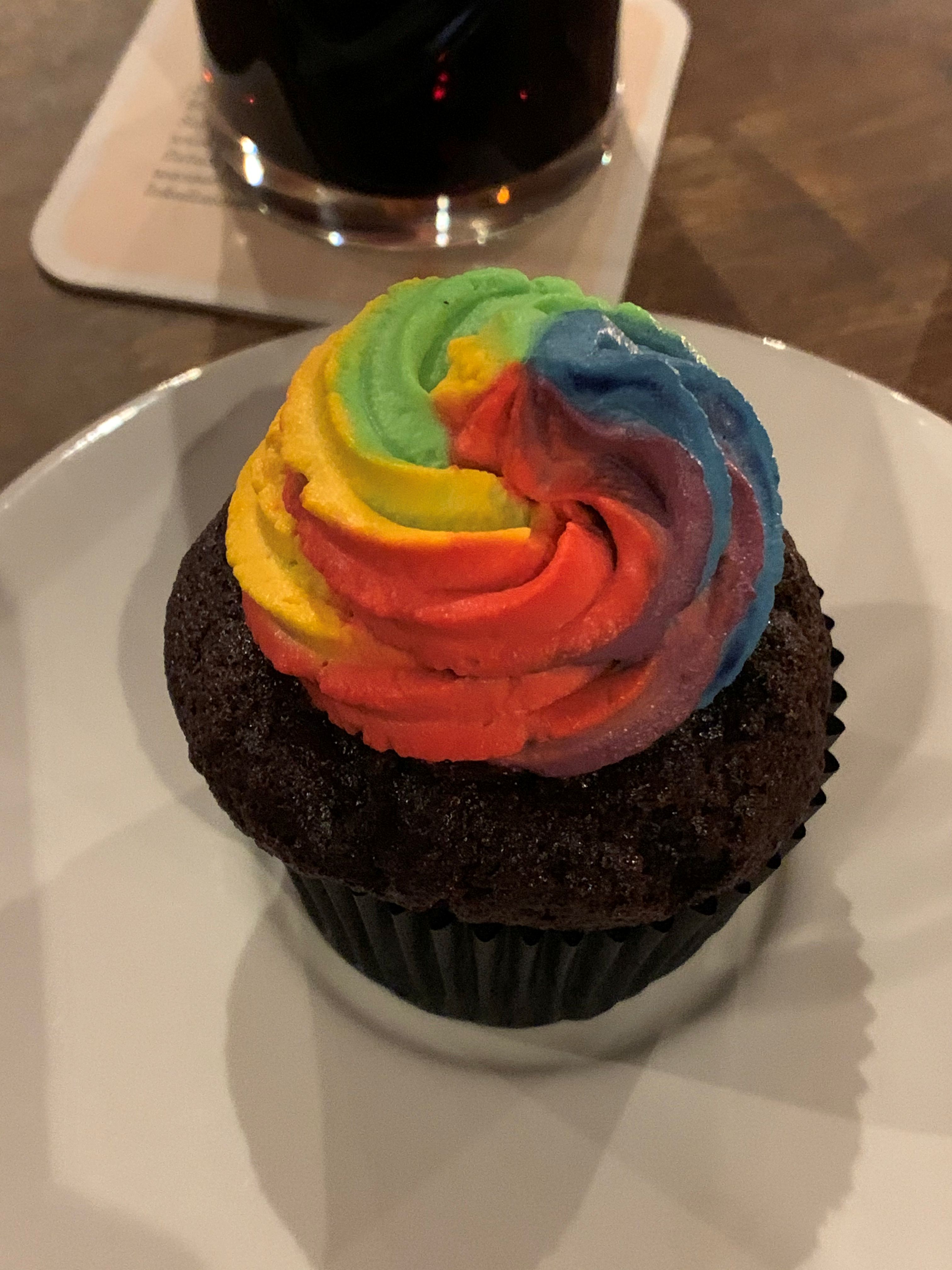 Guinness-Cupcake mit Baileys-Frosting und Goldiger Überraschung unter dem Regenbogen (Saisonal verfügbar)